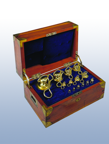 特色:標準法碼是日據時期傳遞質量標準單位之用。使用時以等臂天平檢定,天平的一端放置標準法碼,另一端則為送檢的法碼,以檢定送檢法碼是否符合重量標準。本組法碼共有14個,最重的1貫,最輕的5分。