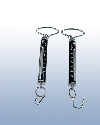 一般秤重用的彈簧吊秤。共有2支,分別為最大秤量3公斤/5台斤,最小刻度50公克/1兩,以及最大秤量2公斤/3台斤,最小刻度20公克/0.5兩。彈簧秤的秤重原理是由虎克定律(Hooke's law)而來:彈簧受到外力作用產生變形,在彈簧線性的條件下,變形量將與外力大小成一定的比例關係,而變形所產生的彈力會與外力的大小相等,所施的力越大,變形量就會越大。應用在彈簧秤上時,依照彈簧變形量的大小就可量測出被測物的重量。